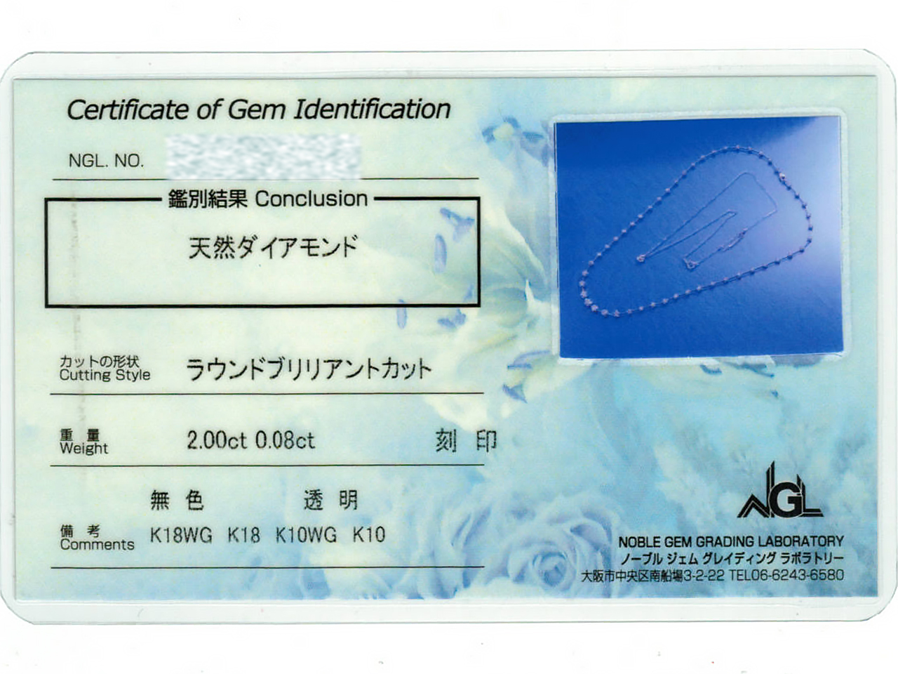 | 石の大きさ | 直径1.7mm~1.8mm×9石(0.18ct) |